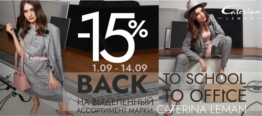 Готовимся к началу офисного сезона! 1-14 сентября скидка на выделенный ассортимент марки Caterina Leman - 15%. Соберите с выгодой свой эффектный образ.